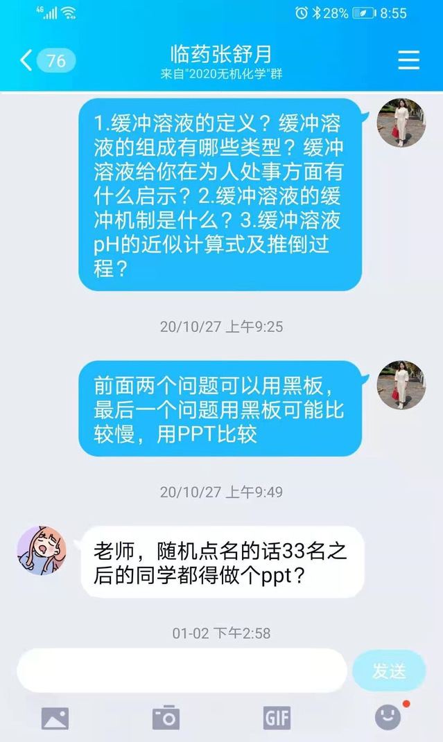 韦柳娅教授将课程思政内容融入省级一流课程《无机化学》的翻转课堂。如讲授“绪论”时,通过青蒿素的发现融入培育学生求真务实、实践创新精神;观看屠呦呦获诺贝尔奖视频,激发学生爱国主义精神及民族自豪感。讲授“缓冲溶液的作用”知识点时,融入学生的抗挫折、抗压能力教育。