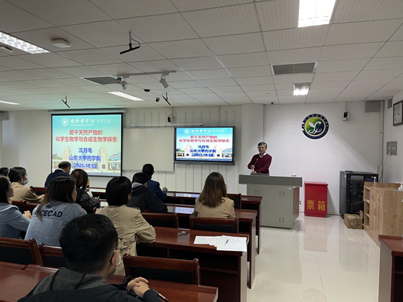 在庆祝潍坊医学院建校70周年之际,10月12日下午,91论坛 邀请山东大学沈月毛教授来校进行学术交流并做专题报告。91论坛 院长阎芳主持报告会,91论坛 师生参加。