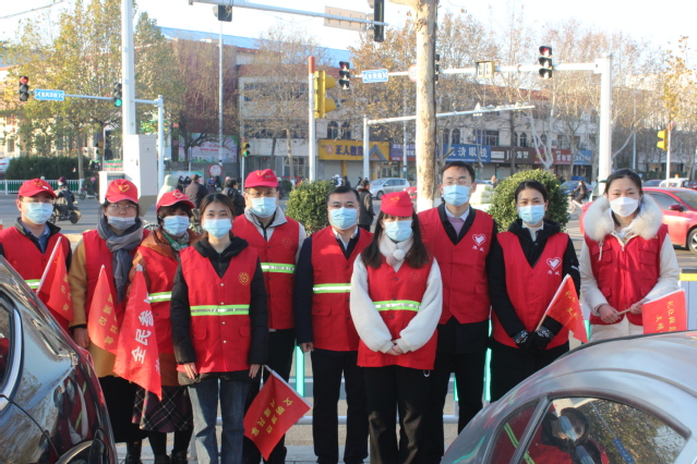 料峭冬日的清晨,寒意浓浓,党员志愿者就来到东风西街与永安路路口,在早7:30-8:30的“早高峰”中进行交通安全志愿服务。志愿者们积极协助交警开展文明交通引导:在十字路口引导市民遵守交通法规,劝导不按规定路线行走的行人和非机动车辆严格按照交通信号灯行驶;提醒骑乘人员自觉佩戴安全头盔,做好自身安全防护,提高行人安全交通意识。志愿服务结束后,党员志愿者前往月河社区党群服务中心,同月河社区党委书记陈天虎就开展好党员“双报到”进行了座谈交流,就进一步联动开展志愿服务达成共识。