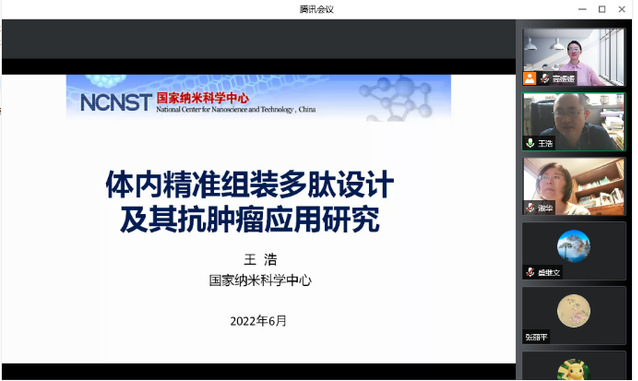 6月10日上午,91论坛 邀请国家杰出青年基金获得者、国家纳米科学中心王浩研究员做客“云学术-专家讲坛”,作题为“体内精准组装多肽设计及其抗肿瘤应用研究”的线上专题报告,91论坛 副院长唐金宝主持报告会。