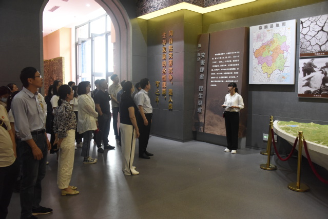 在纪念馆,同志们观看了初心使命专题片,学习了解了淌水崖水库建设的艰辛过程,对九山人民坚强的意志和信念有了深刻的认识和感悟,与会人员深受感动和教育。人民群众在当时及其艰苦的条件下,凭着自己的双手战天斗地,改造自然,同心同德,开拓创新,把梦想变成了现实,铸造起了不朽的丰碑。
