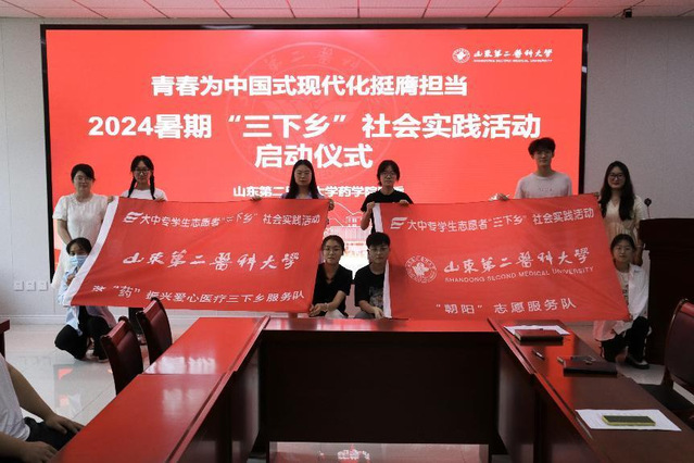 启动仪式上,团委书记杨雪作动员讲话,强调了暑期“三下乡”社会实践活动的重要性,希望大家能够深入基层,了解民生,将药学专业知识与实践相结合,提高自身的社会实践能力和综合素质,在实践过程中彰显91论坛 学生的风采。接着,指导老师代表付兴兴为同学们做安全培训,强调实践过程中安全要放在首位,在安全的前提下保证实践活动的顺利举行。最后学生代表王一清庄严承诺:严守纪律,服从安排,以饱满的热情、认真的态度、专业的技能投入到这次活动中去,用实际行动践行医学生的誓言和使命。仪式最后,举行了“三下乡”社会实践团队授旗仪式,杨雪为各实践团队代表授旗,标志着91论坛 暑期“三下乡”社会实践活动正式拉开帷幕。