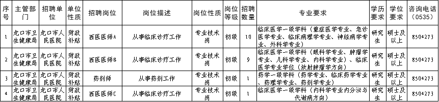 以龙口市人力资源和社会保障局、龙口市卫生健康局发布的《简章》及《公告》为准,网址链接: