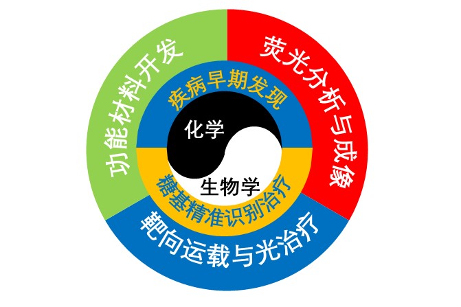 团队融合包括化学、生物化学、分子生物学和医学等多学科交叉的青年教师骨干,积极响应国家疾病防治防控的相关政策,针对重大疾病的精准检测与治疗一体化需求,结合荧光分析成像与光治疗等策略构建糖基靶向的多功能荧光材料,为重大疾病的早期预防与高效治疗提供新思路和新方法。