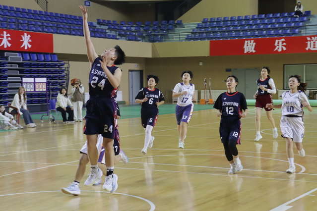这支由两院学子携手组成的队伍,是赛场上最耀眼的“铿锵玫瑰”。她们怀揣对篮球的赤诚热爱与深切的集体荣誉感,在训练场上挥汗如雨、淬炼筋骨,在竞技场上锋芒毕露、绽放光彩。从小组循环赛的白热化厮杀,到半决赛的巅峰对决,队员们始终秉持坚韧不拔的信念,以精准默契的战术联动、固若金汤的顽强防守、势如破竹的高效进攻,一次次突破重围、勇毅前行。决赛场上,包夹补防果断迅猛,传球跑位行云流水,每一次纵身跳跃、每一次精准投篮都点燃全场热情。当终场哨声嘹亮响起,全场瞬间沸腾,共同见证药学公卫联队冠军荣光加冕的高光时刻!